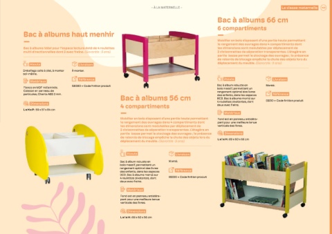 Bac à albums idéal pour l’espace lecture doté de 4 roulettes les dimensions sont modulables par déplacement de