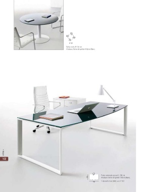 Ø 120 Table ronde Ø 120 cm. Finitions Verre Graphite V 03 et Blanc. AVÈNE + 102 Poste rectangle accueil L 200 cm. 110 Finitions Verre Graphite V 03 et Blanc. 1 desserte bois (BM), voir P 157. 200