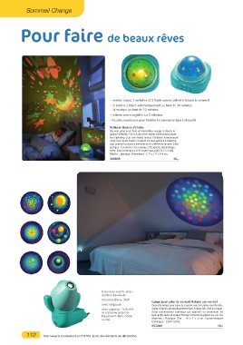 - lumière douce, 7 mélodies et 3 fonds sonores aident à trouver le sommeil