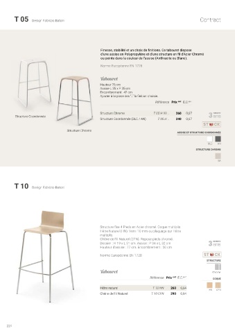 Finesse, stabilité et un choix de finitions. Ce tabouret dispose Contract